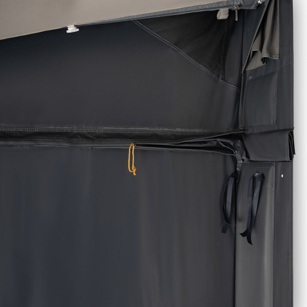 • Stevig tentdoek (400 g/m²) van Weathershield PVC – geschikt voor winterse omstandigheden, duurzaam, waterdicht en eenvoudig schoon te maken
