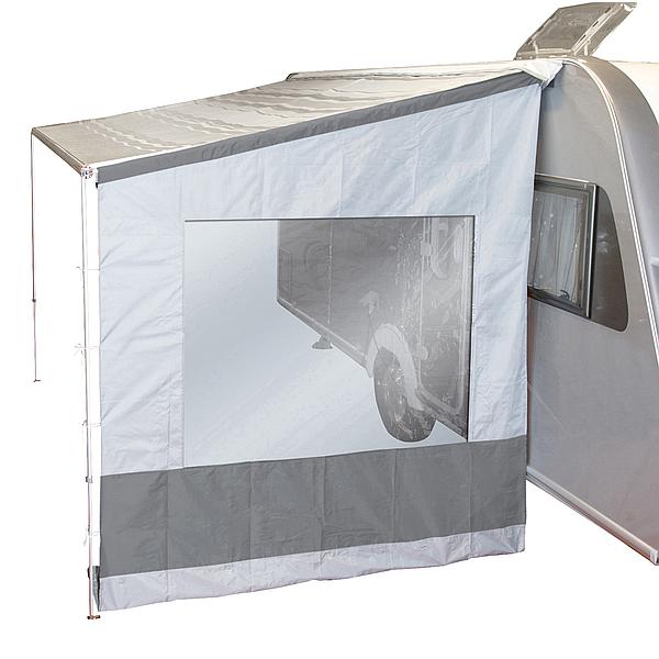 Universele zijwand die past op zakluifels van Fiamma en Thule met een diepte van 225 cm. Geschikt voor luifels met een gemonteerde hoogte van 220 tot 290 cm. Bevestigd aan de arm of dakversterking van de luifel.