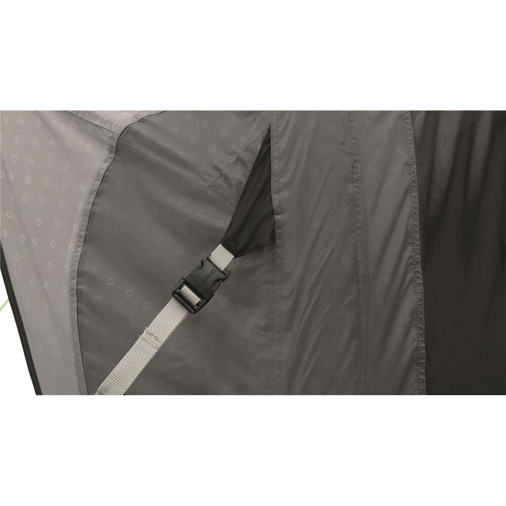 Outwell Newburg is een stabiele en zeer snel op te zetten campervoortent. Dankzij de diepte van 2,6 meter en de gebogen luchtkanalen die zorgen voor een goede hoogte in grote delen van de tent, biedt deze tent veel bruikbare ruimte. Zowel de camper als de tent zijn eenvoudig toegankelijk via de grote voordeur, via de deur aan de zijkant van de tent of de kleine deuren aan de zijkanten van de sluis. Op warme dagen kan de hele voorkant worden geopend om een beschutte buitenruimte te creëren. Als er insecten in de buurt zijn, trek je gewoon de muggendeur aan de voorkant dicht. De tent heeft ook een ingenaaide vloer die tocht elimineert en insecten buiten houdt en condensatie vermindert.