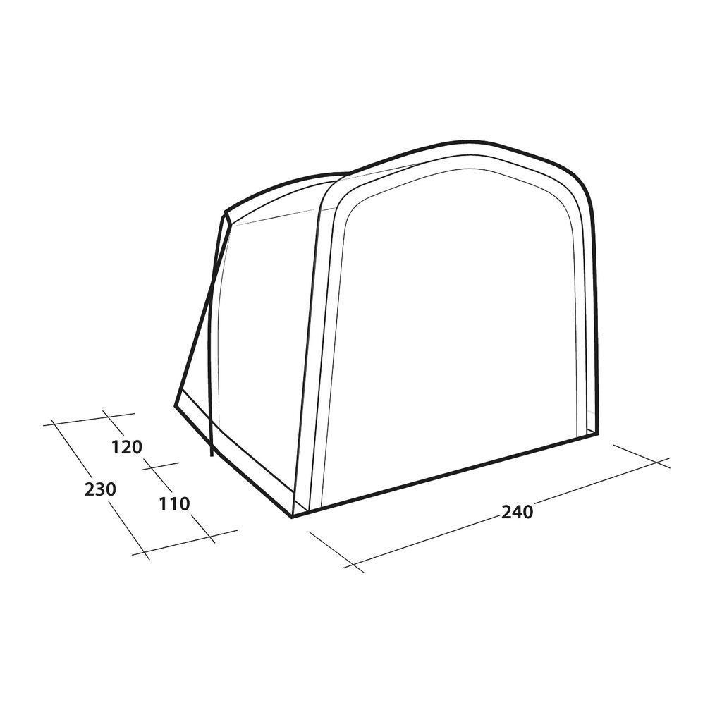 Een slaapcabine/opbergruimte voor de Outwell Cross PowerAir voortent. Wordt met een ritssluiting bevestigd aan een van de deuren van de voortent. Wordt compleet geleverd met binnentent en inclusief draagtas voor eenvoudig transport en opslag.
