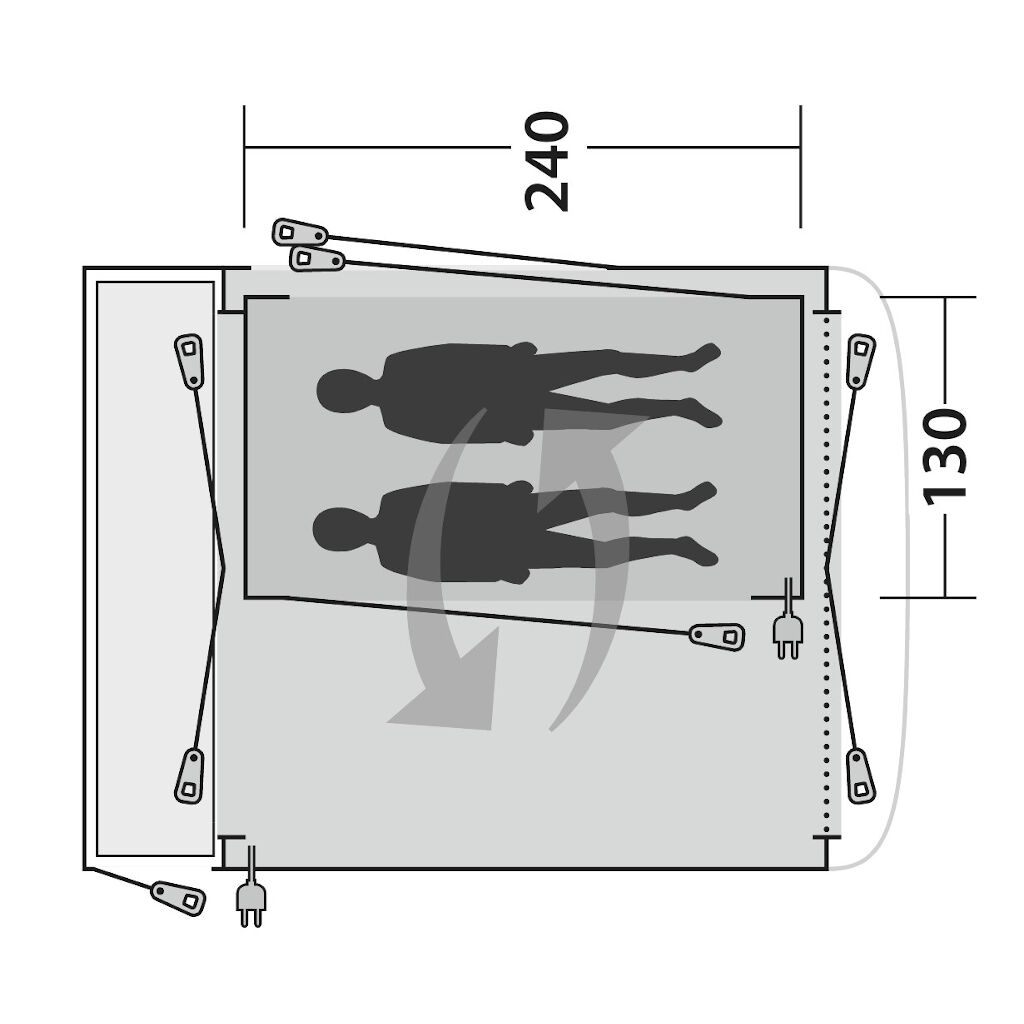 Binnentent van Outwell die past bij Milestone, Bremburg, Linnburg en Starville. Met donkere wanden en dak wordt de lichtinval verminderd voor een goede nachtrust. Opbergvakken aan de binnenkant van de slaapcabine zorgen ervoor dat je je spullen georganiseerd kunt houden.