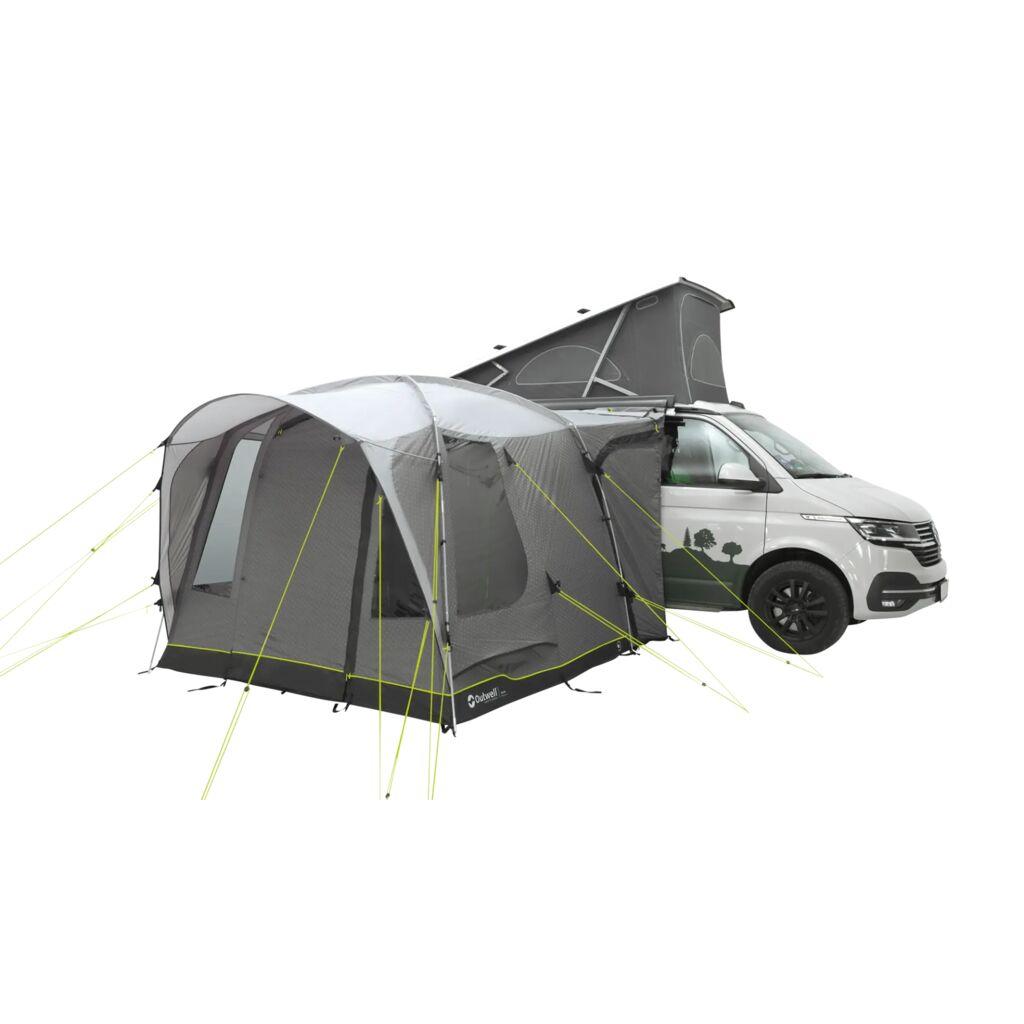Geef je voertuig extra ruimte voor uitrusting, koken of ontspanning. De Outwell Pine Hills is een vrijstaande en snel op te zetten bustent. Geschikt voor vrijwel alle voertuigen met een hoogte tussen 175 en 200 cm. Een muggengaas bij de hoofdingang en dubbele deuren aan beide zijden van de sluis maken de tent gemakkelijk toegankelijk en eenvoudig te ventileren op warme dagen. De tent is volledig vrijstaand en kan worden losgekoppeld als je met de auto wilt wegrijden.