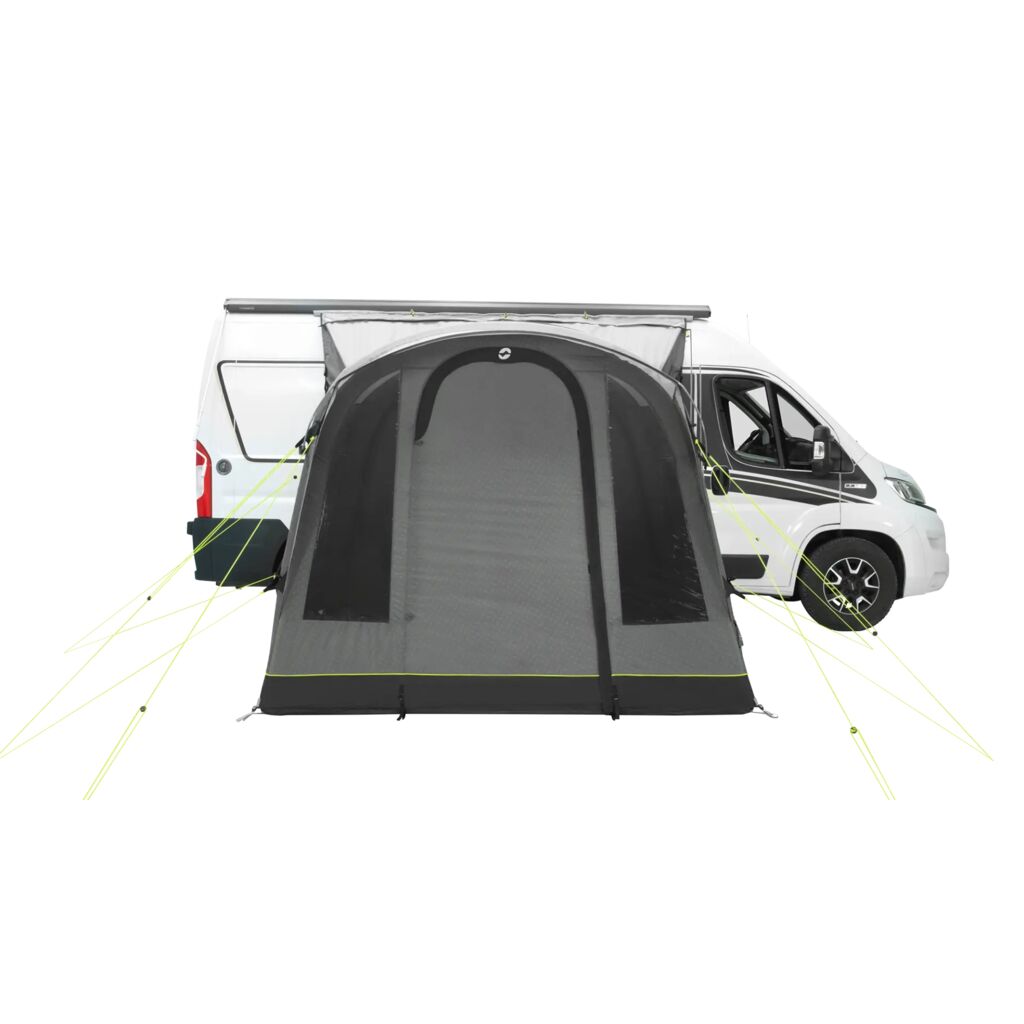 Ga nog een stap verder in vrijheid en maak van uw voertuig een basiskamp voor nieuwe avonturen. De Outwell Santa Monica Air Mid/Tall Autotent biedt een ruime extra leefruimte voor uitrusting, koken of ontspannen avonden na een dag onderweg. Deze vrijstaande en snel op te zetten bustent past op voertuigen tussen 240 en 270 cm en is klaar wanneer u dat bent. Muskietengaas bij de hoofdingang en dubbele deuren aan beide zijden van de sluis zorgen voor maximale flexibiliteit en aangename ventilatie op warme dagen. Moet u verder rijden? Koppel de tent los en laat deze op de camping staan. Met het Rigid Air System is de tent snel en eenvoudig op te pompen en weer leeg te laten lopen.