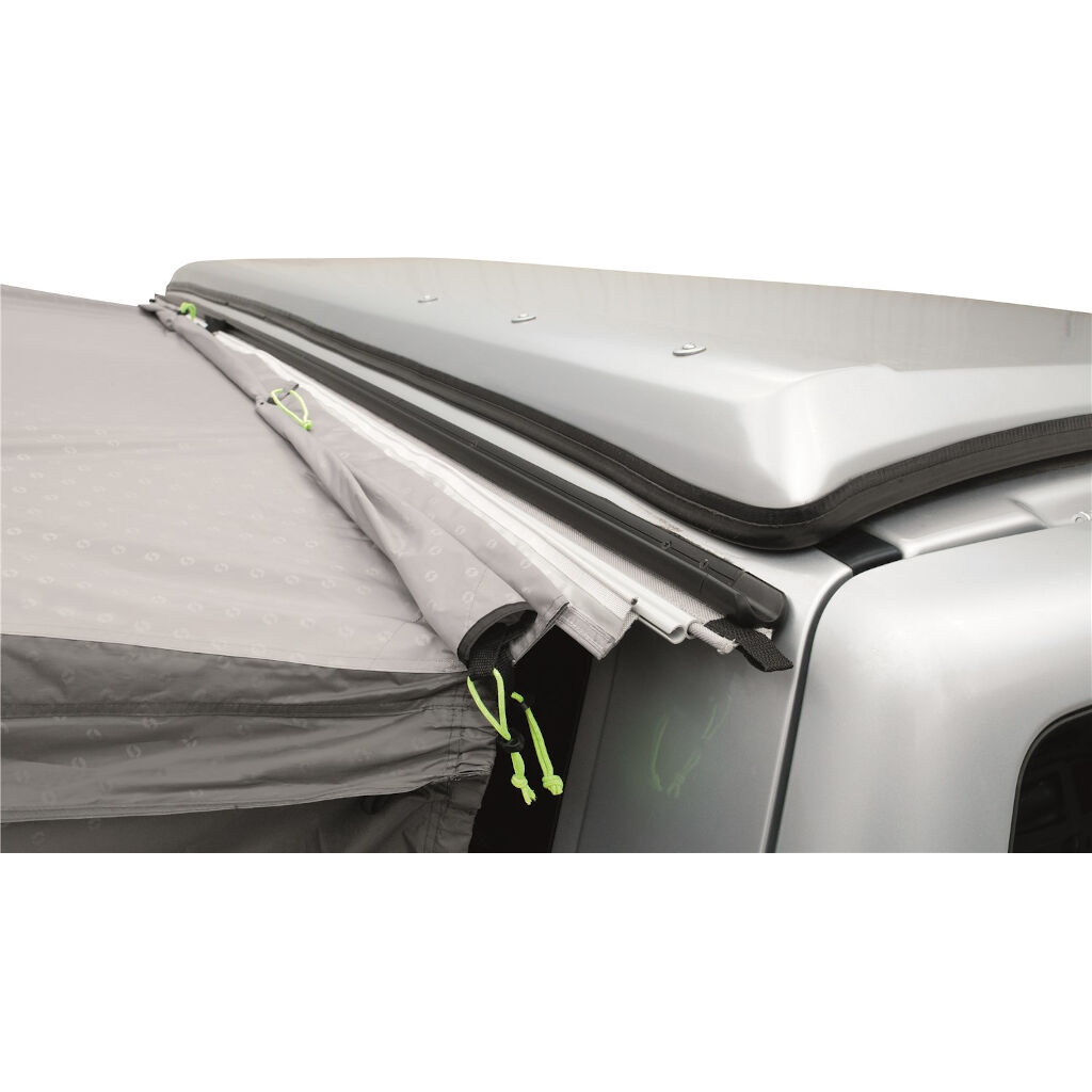 Slimme bevestiging om de tent en de auto te verbinden. Maakt het gemakkelijker wanneer je bijvoorbeeld de tent op de camping wilt laten staan maar met de auto weg wilt rijden.