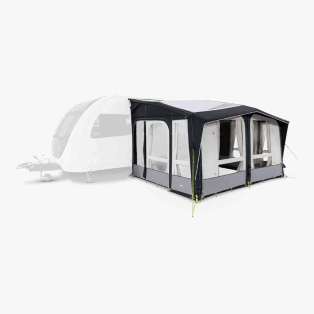 Dometic Club Air Pro is een voortent met luchtkanalen en een diepte van 275 cm. De tent is extreem eenvoudig op te zetten en kan dankzij dubbele peesprofielen zowel op een caravan als een camper worden gemonteerd. Bevestig eenvoudigweg het tentdoek aan de rail van de caravan of de luifel van de camper, zet vier haringen in de hoeken en pomp de in het tentdoek geïntegreerde kanalen op die het frame vormen via een ventiel op de tent. Bevestig vervolgens de afdichting tegen de caravan en de tent is klaar voor gebruik. Grote ramen rondom de tent en in het dak zorgen voor goed licht en een prachtig uitzicht.