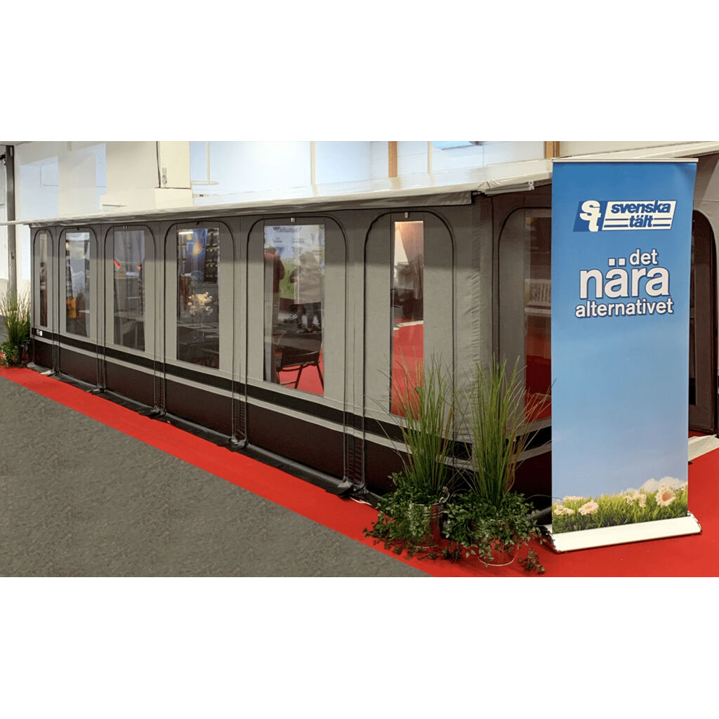 Standby X van Svenska Tält in Dorotea is hun grootste standbytält en richt zich op degenen die een vaste campingplaats hebben en de woonruimte willen maximaliseren. Standby X is een jaarrond tent, dus het kan alle soorten klimaten en weersomstandigheden aan. Dankzij de sluis kan men de caravan loskoppelen en de achterkant sluiten als men op vakantie wil gaan met de caravan. Het duurzame dak van kapeldoek en sterke wanden van acrylweefsel garanderen een lange levensduur. StandBy X is een uitstekende investering voor wie op zoek is naar een betrouwbare en comfortabele campingaccommodatie.